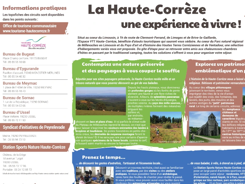 Ce livret est disponible aux Bureaux d'Information Touristique de Haute Corrèze à Meymac et à Bugeat au prix